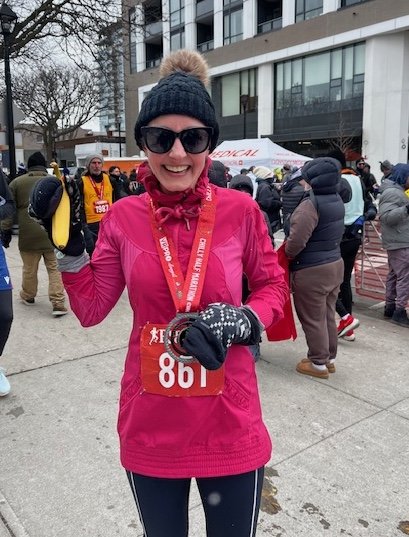 When she's not running/walking/cheering, she's devouring books, movies, coffee, chocolate, cuddles from her rabbit Hugo, and adding to her Toronto street poo art series PooPeriod.