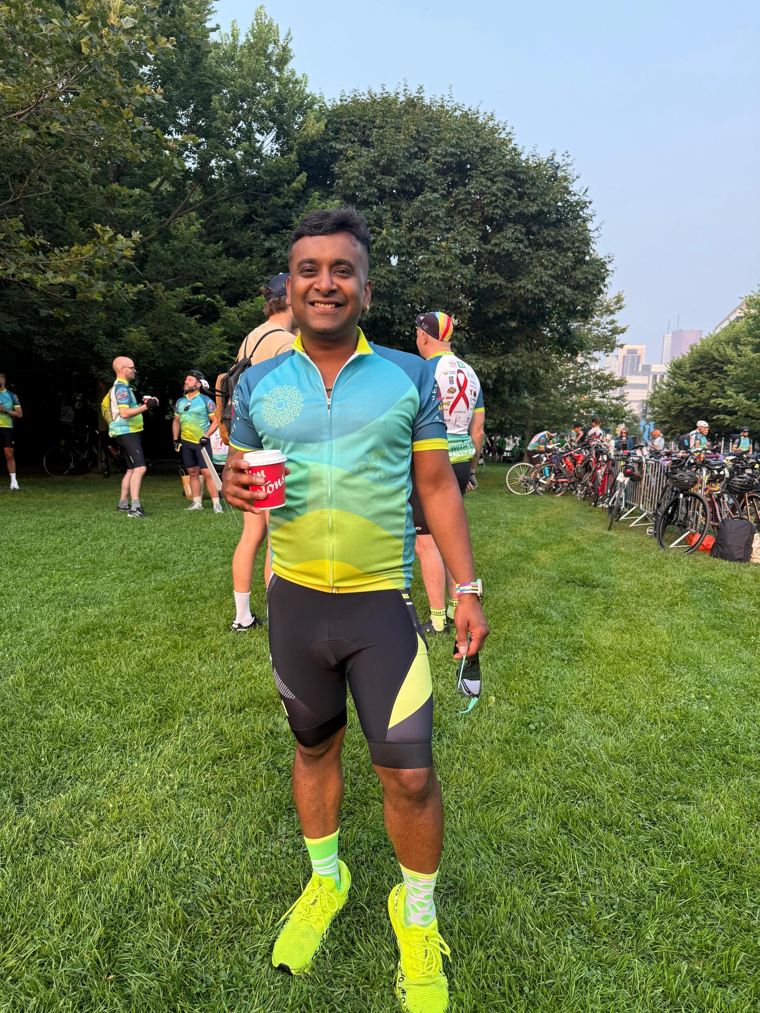 Abhi is an endurance cyclist since 2023 with the Friends for Life Bike Rally, and a new runner. He is thrilled to be an ambassador for the 30th anniversary as it will be his first pride & remembrance run. First experiencing Toronto Pride in 2018, his journey being a Toronto boy exploring and coming to peace with his identity has been onwards and upwards, which is why he considers this experience so personally meaningful. Let’s go!