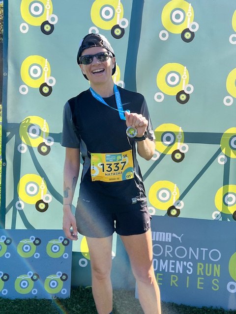 Nat is the CEO of Point Blank, the first fully unionized creative agency in Canada, known for their boundary pushing, values-based and internationally award-winning work. Nat also sits on the board of Queer Momentum, a national queer and trans advocacy organization. Her favourite run is a very speedy and competitive 5K, but she's signed up for two longer distance races this year–mostly to keep up with Shannon.